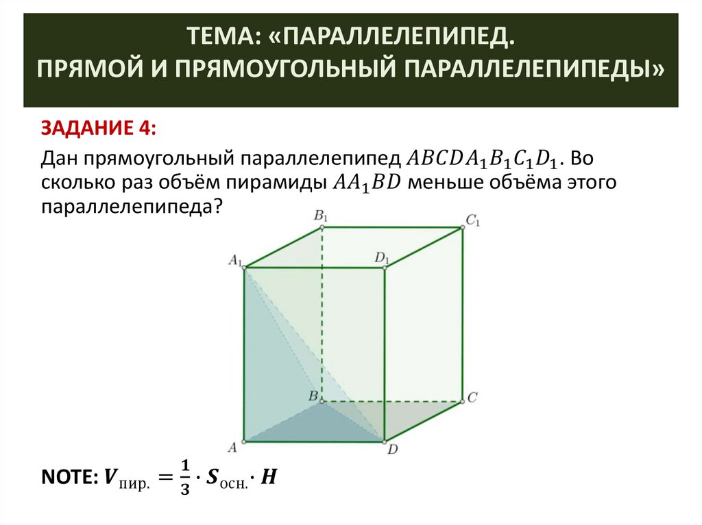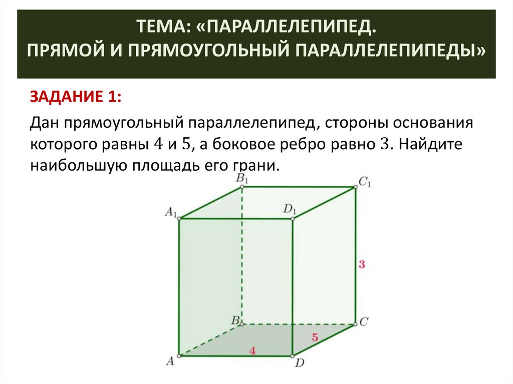 ТЕМА: «ПАРАЛЛЕЛЕПИПЕД.ПРЯМОЙ И ПРЯМОУГОЛЬНЫЙ ПАРАЛЛЕЛЕПИПЕДЫ.