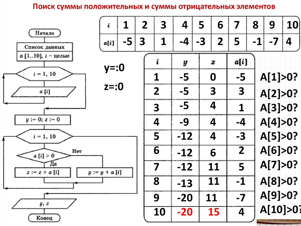 Поиск суммы положительных и суммы отрицательных элементов1 2