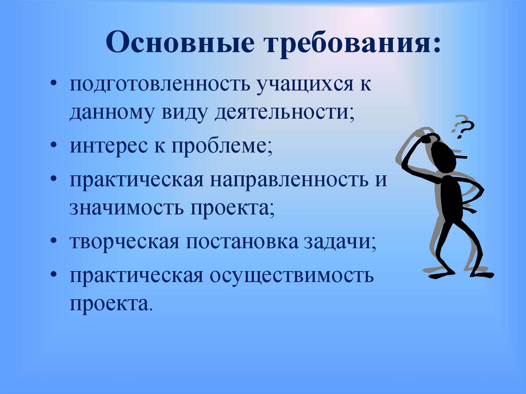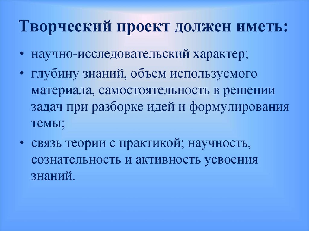 • научно-исследовательский характер;• глубину знаний, объем используемого