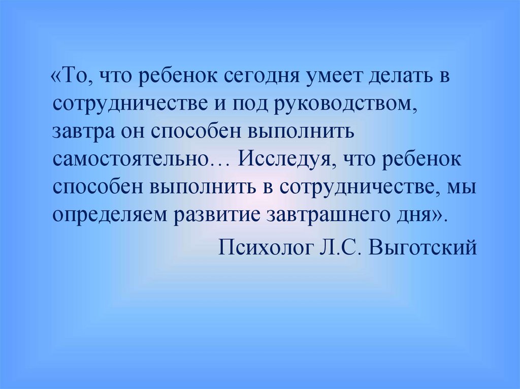 «То, что ребенок сегодня умеет делать всотрудничестве и под руководством,