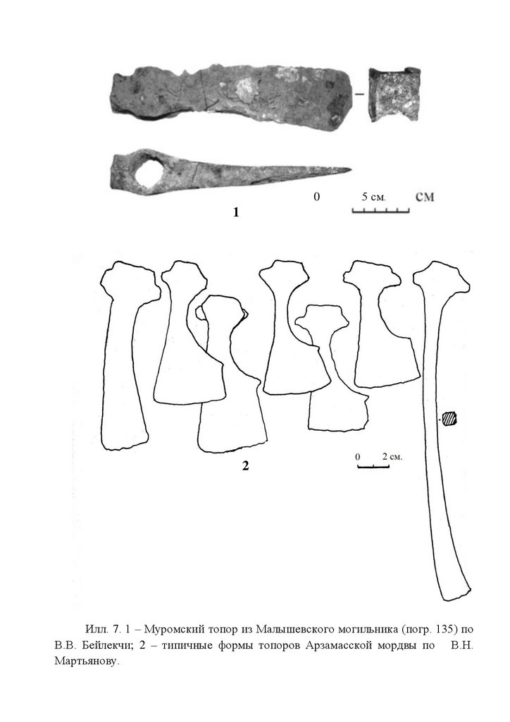 Илл. 7. 1 – Муромский топор из Малышевского могильника (погр. 135) по