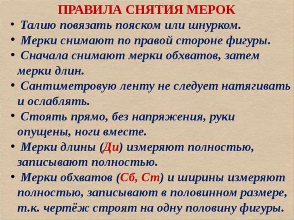 Снятие мерок для построения чертежа швейного изделия. Правила снятия мерок (технология)