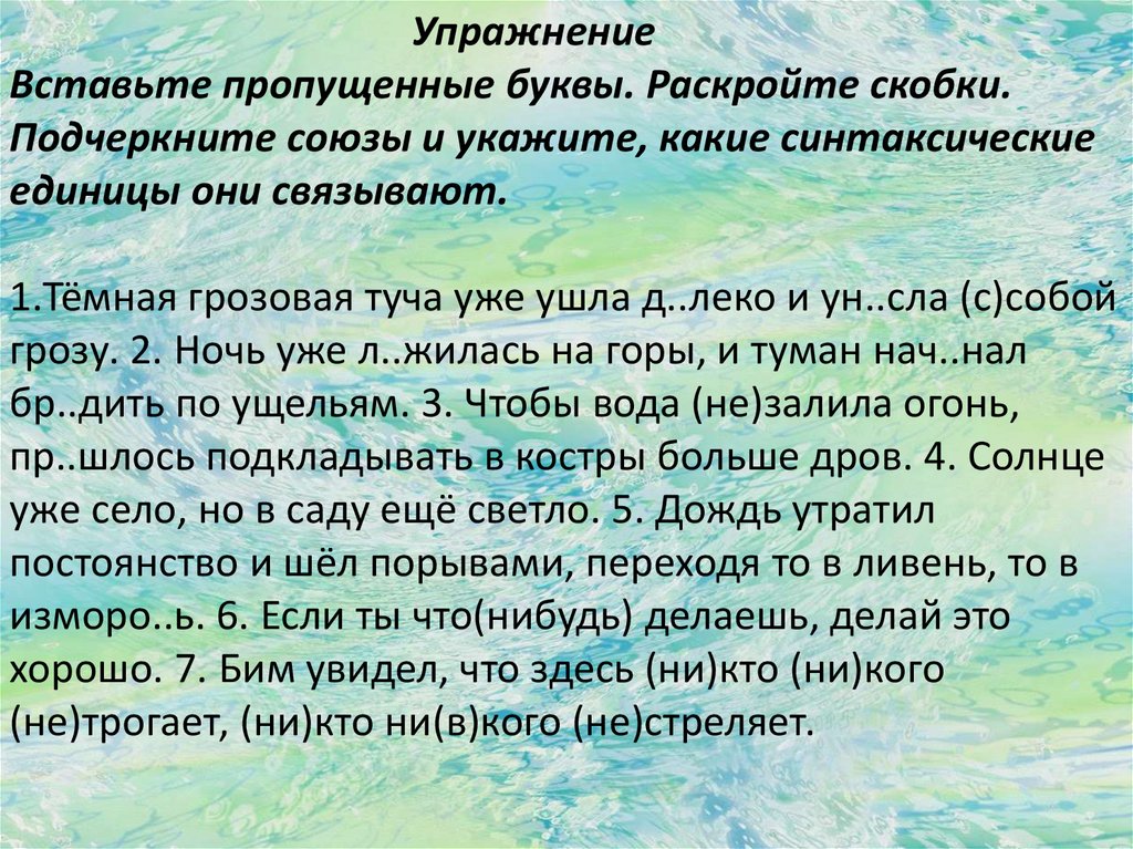 бр..дить по ущельям. 3. Чтобы вода (не)залила огонь,