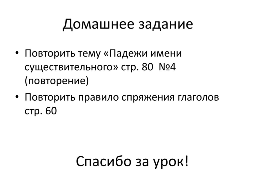 • Повторить тему «Падежи имени