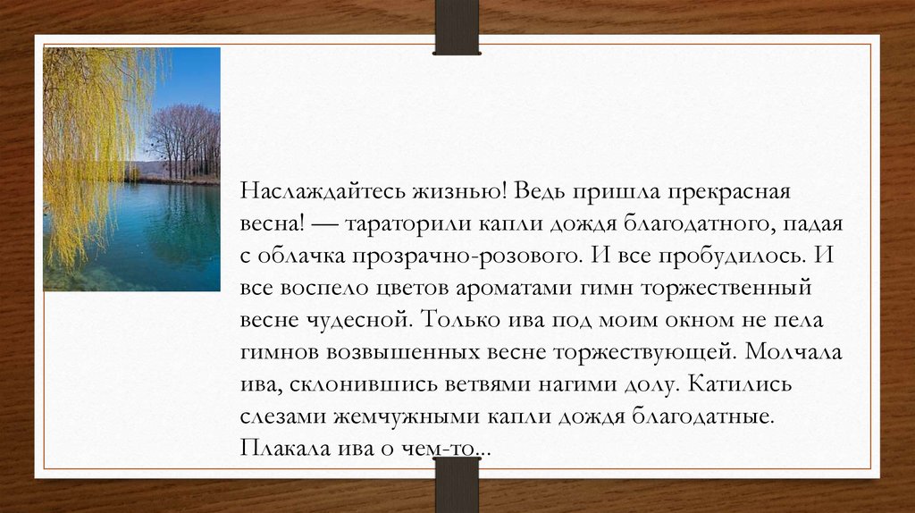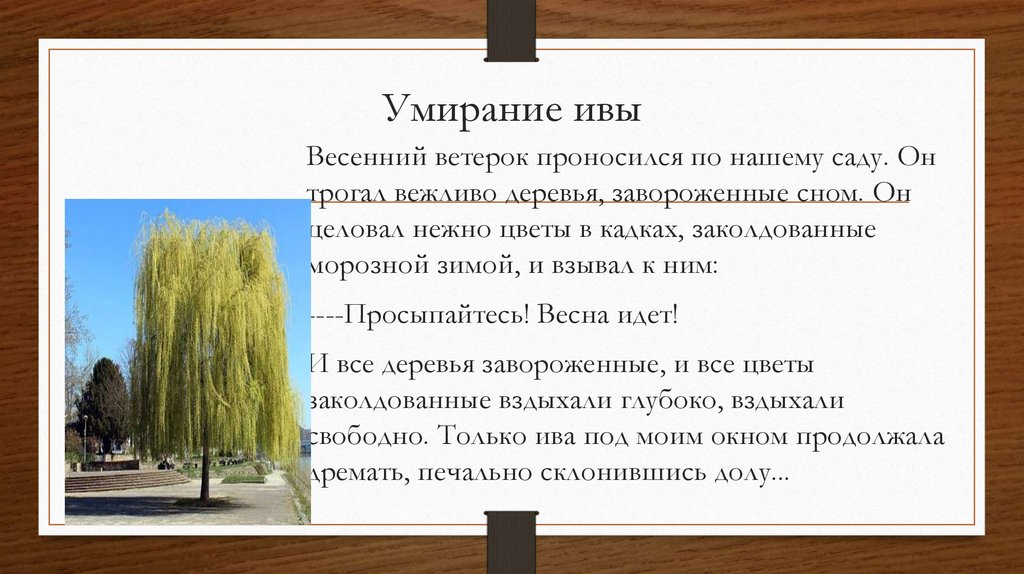 Умирание ивыВесенний ветерок проносился по нашему саду. Он