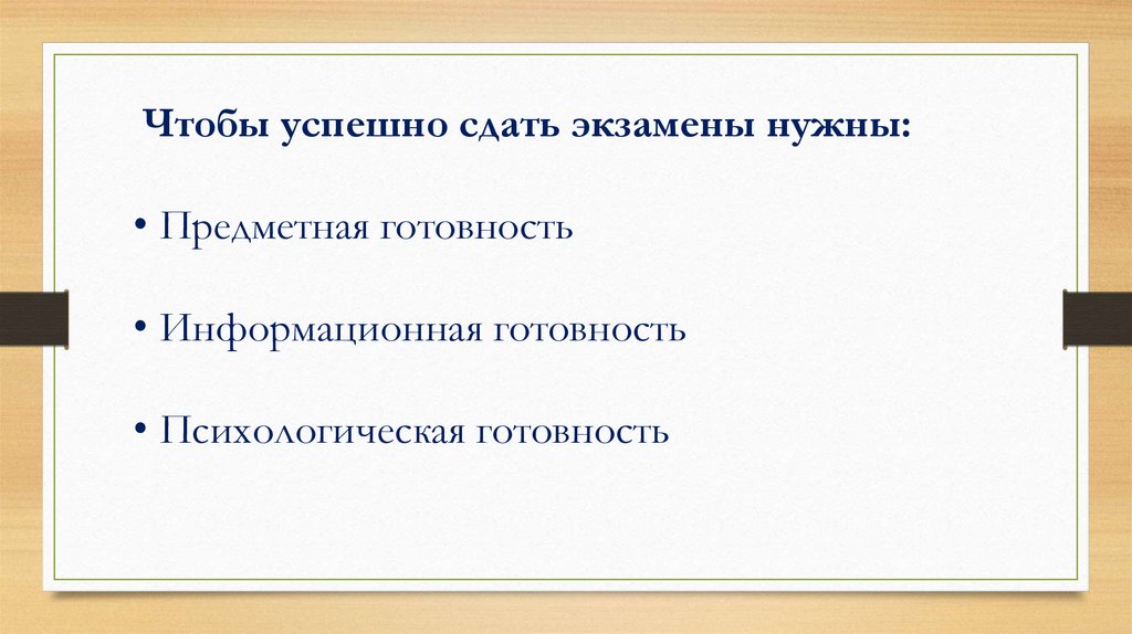 Чтобы успешно сдать экзамены нужны:• Предметная готовность
