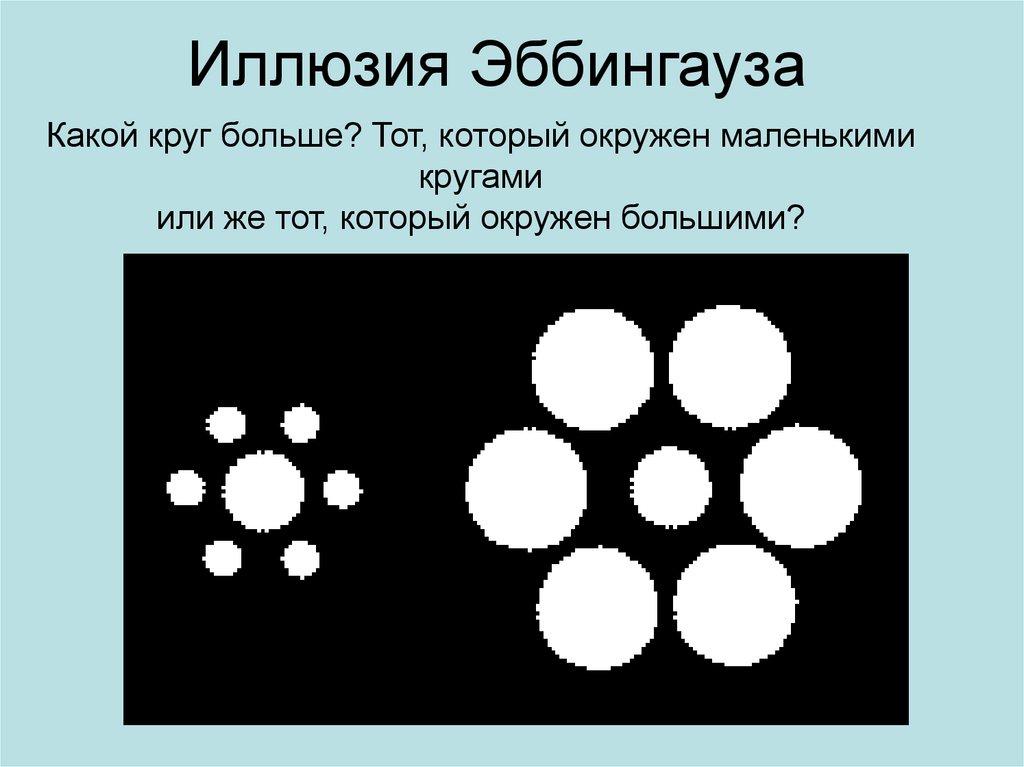 Иллюзия ЭббингаузаКакой круг больше? Тот, который окружен маленькими