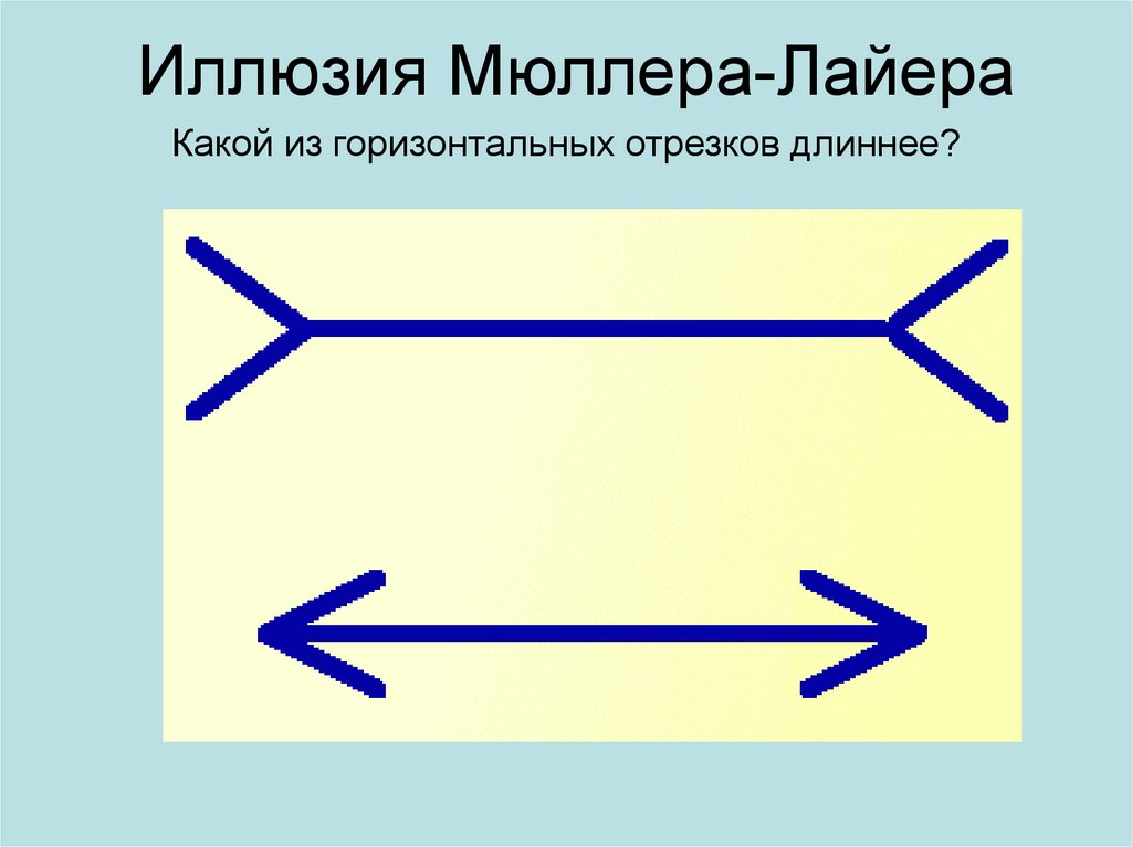 Иллюзия Мюллера-ЛайераКакой из горизонтальных отрезков длиннее?
