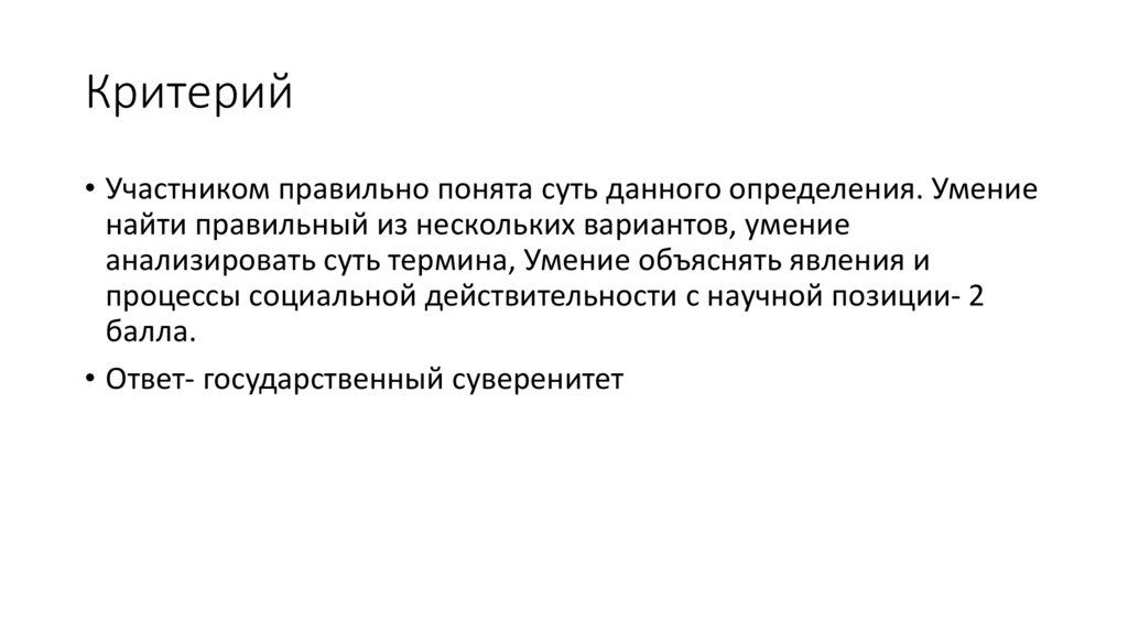 Критерий• Участником правильно понята суть данного определения. Умение