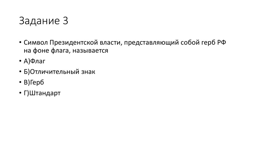 Задание 3• Символ Президентской власти, представляющий собой герб РФ