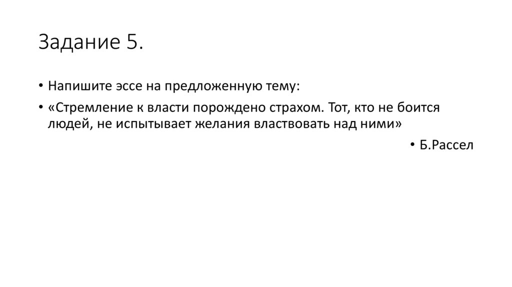 Задание 5.• Напишите эссе на предложенную тему: