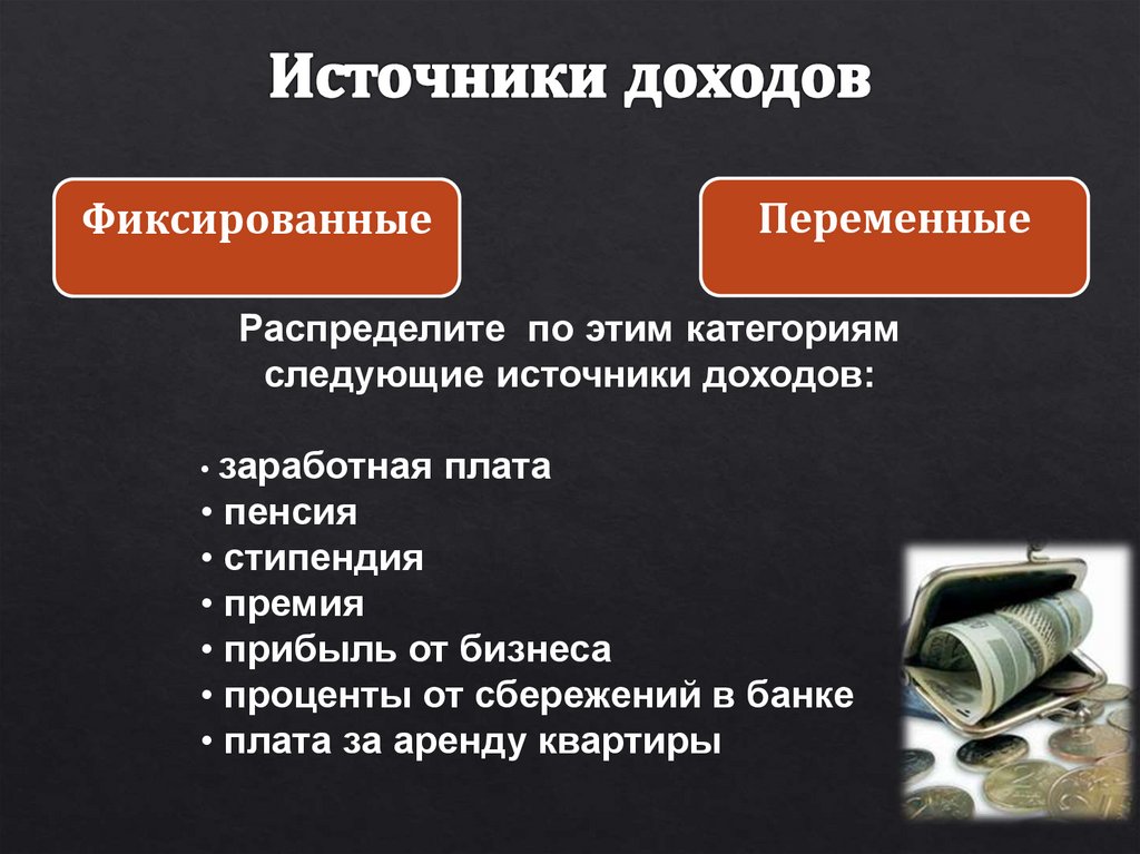 следующие источники доходов: