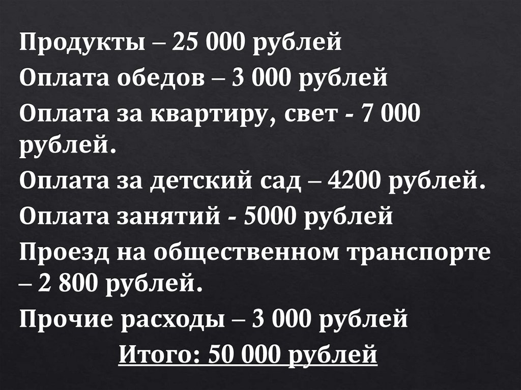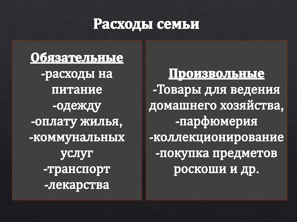 следующие расходы семьи: