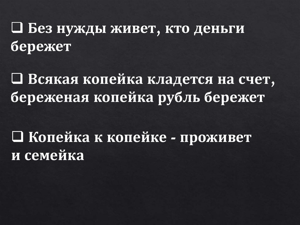 Всякая копейка кладется на счет,береженая копейка рубль бережет