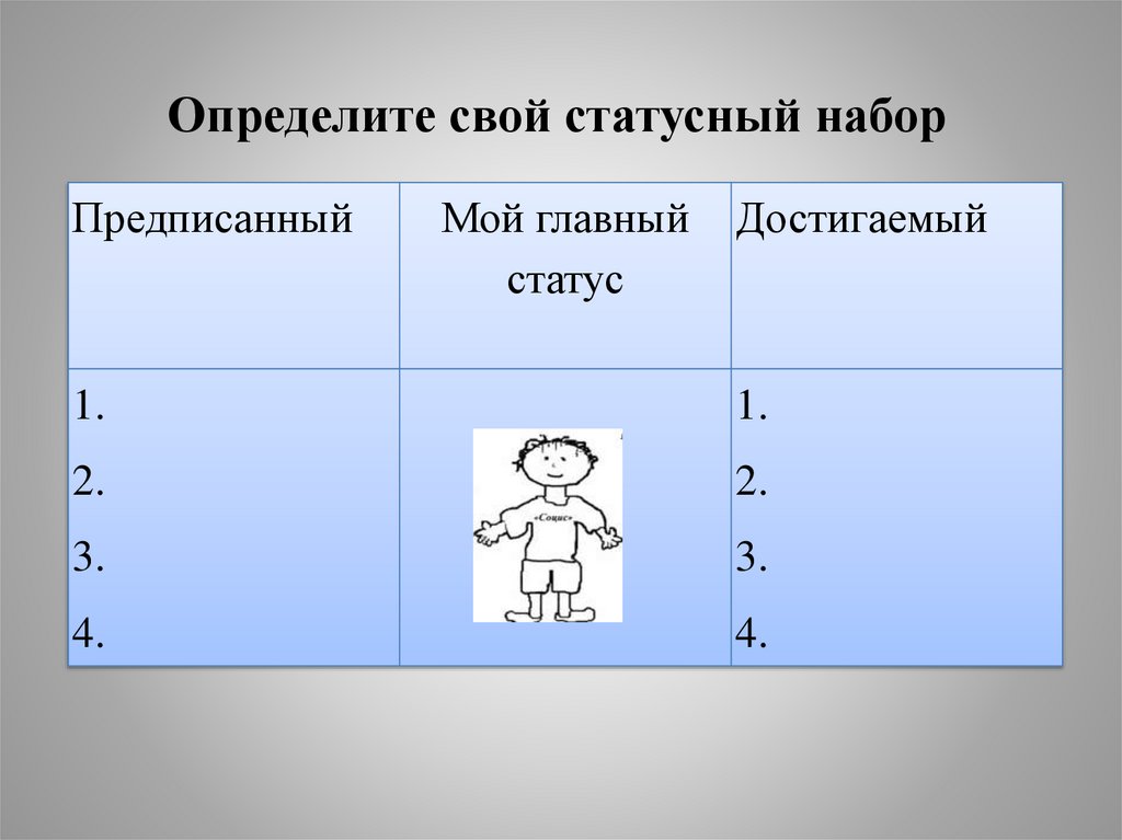 Социальный статус человека дает ему определенные права,накладывает обязанности и определяет соответствующее