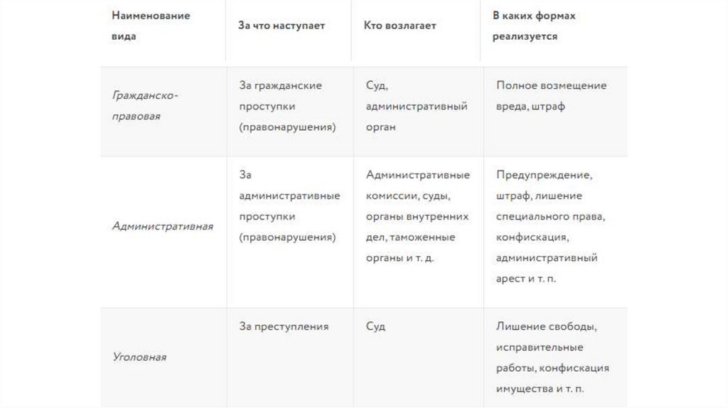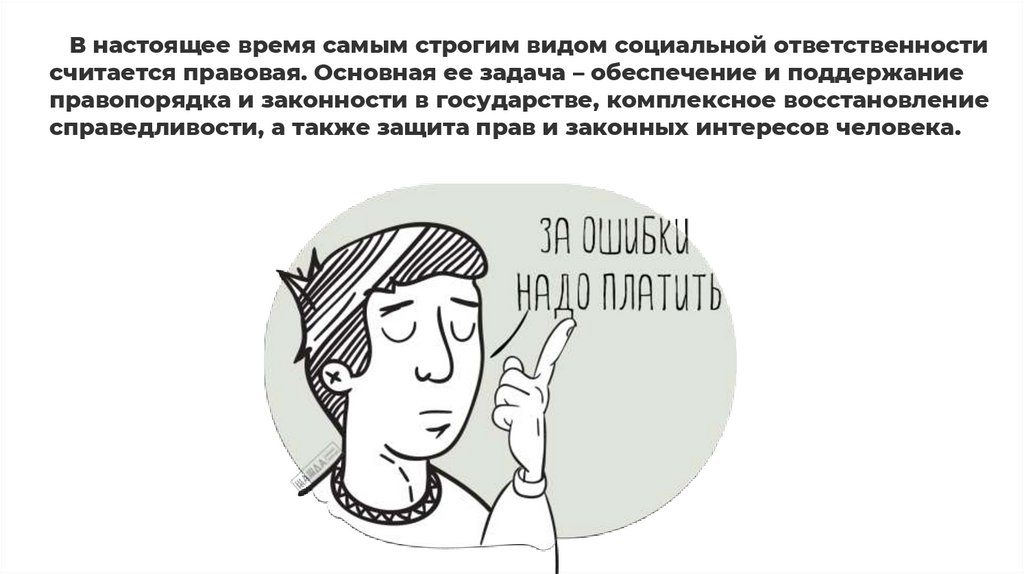 В настоящее время самым строгим видом социальной ответственностисчитается правовая. Основная ее задача – обеспечение и поддержание