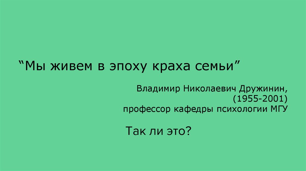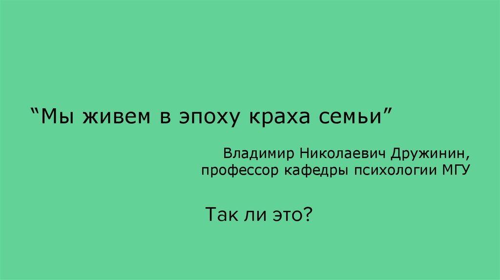 “Мы живем в эпоху краха семьи”Владимир Николаевич Дружинин,