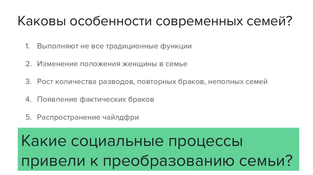 Каковы особенности современных семей?1. Выполняют не все традиционные функции