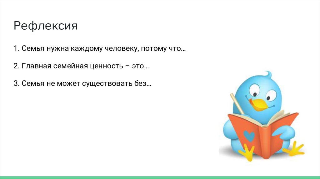 Рефлексия1. Семья нужна каждому человеку, потому что…