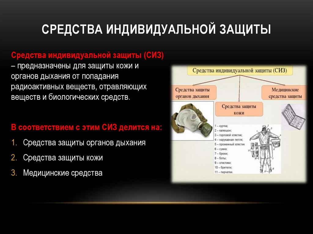 СРЕДСТВА ИНДИВИДУАЛЬНОЙ ЗАЩИТЫСредства индивидуальной защиты (СИЗ)