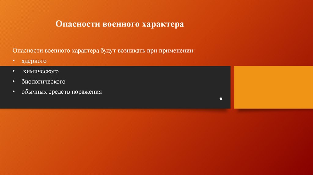 Опасности военного характераОпасности военного характера будут возникать при применении: