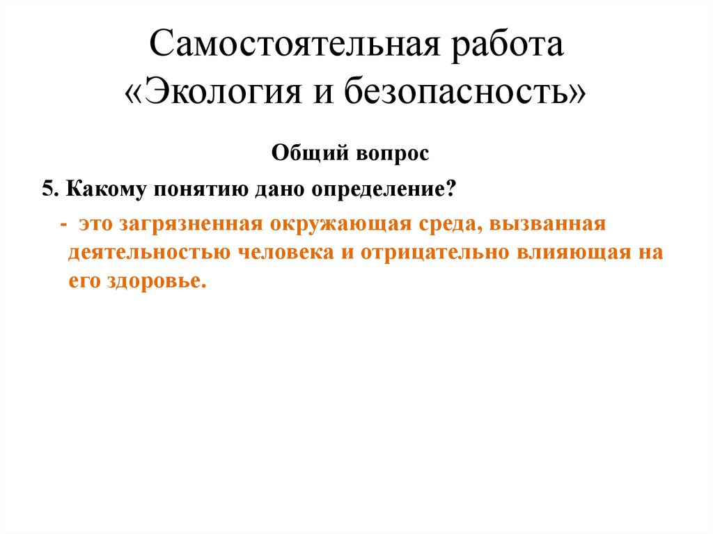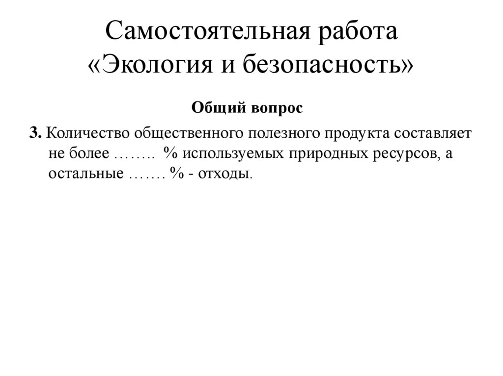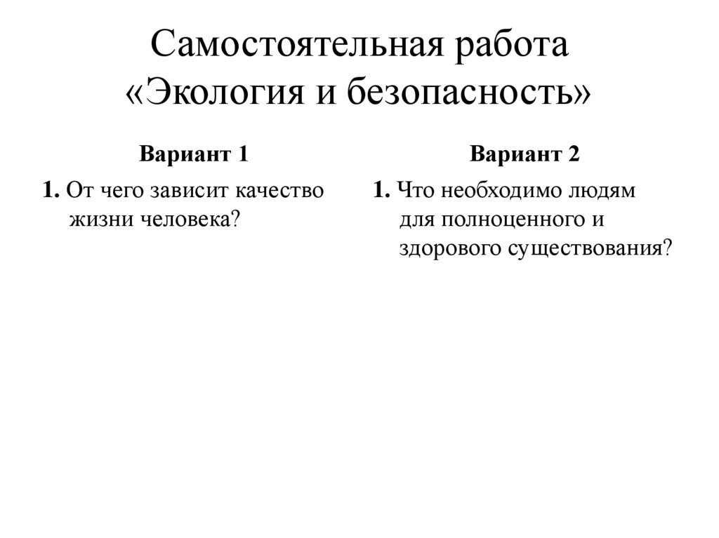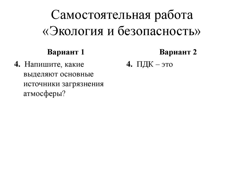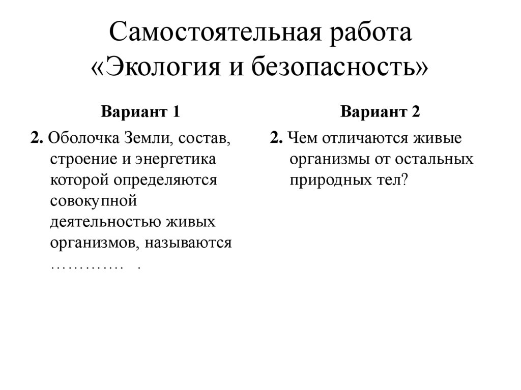 Экология и безопасность. Самостоятельная работа