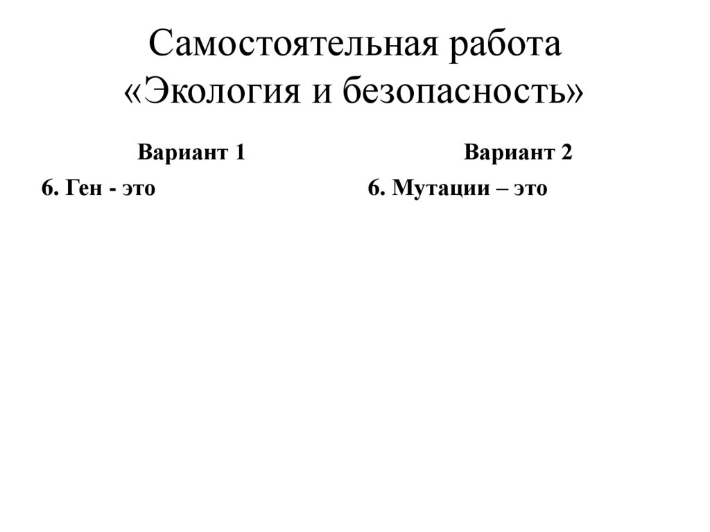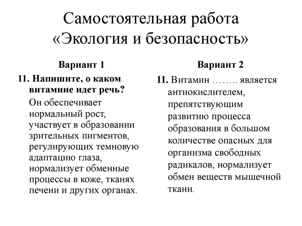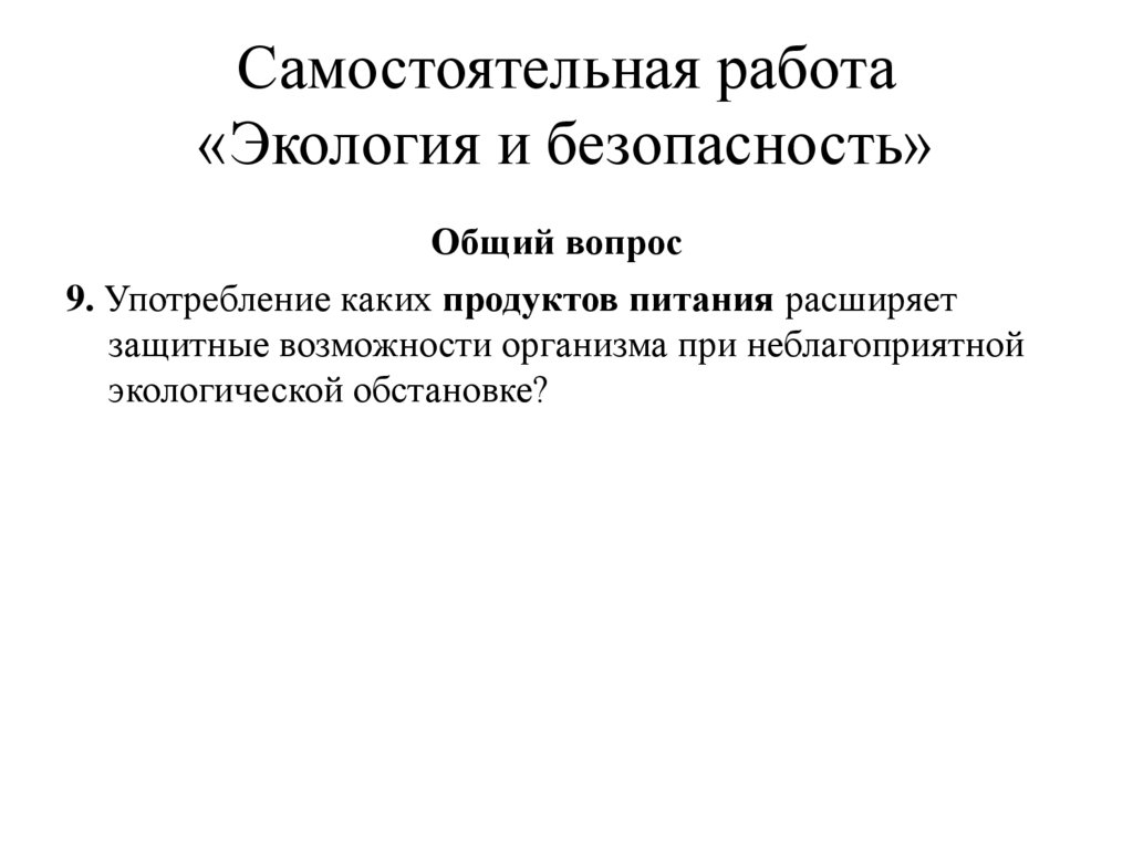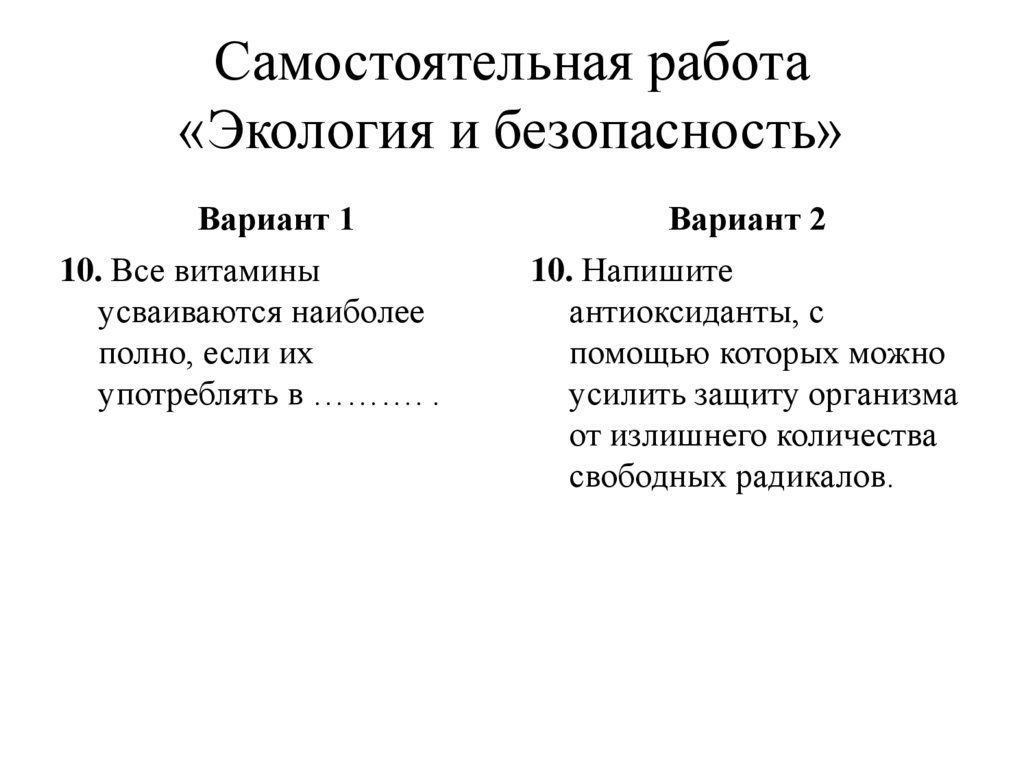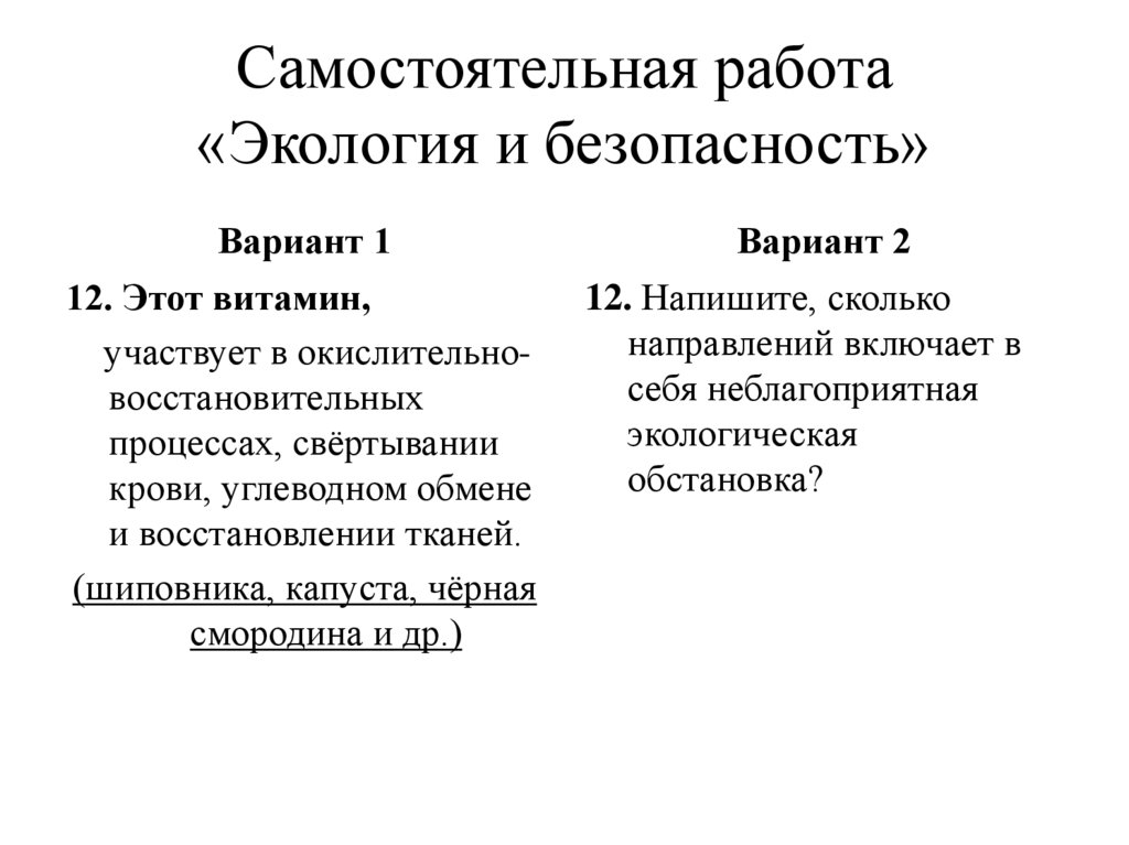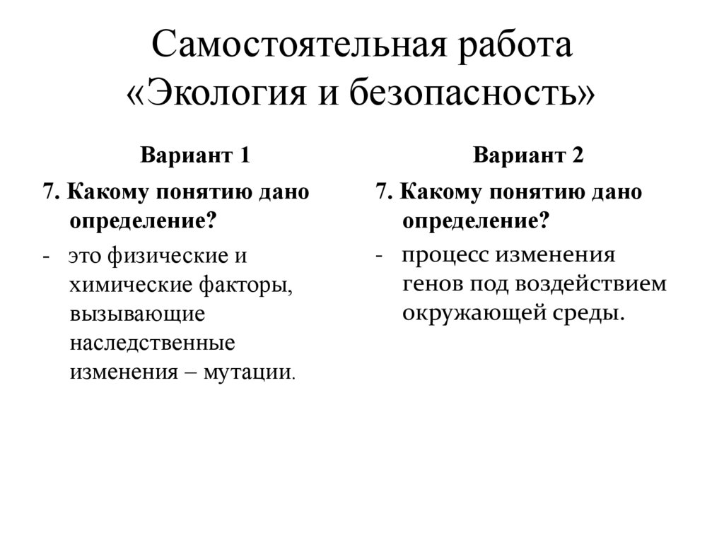 Самостоятельная работа«Экология и безопасность»