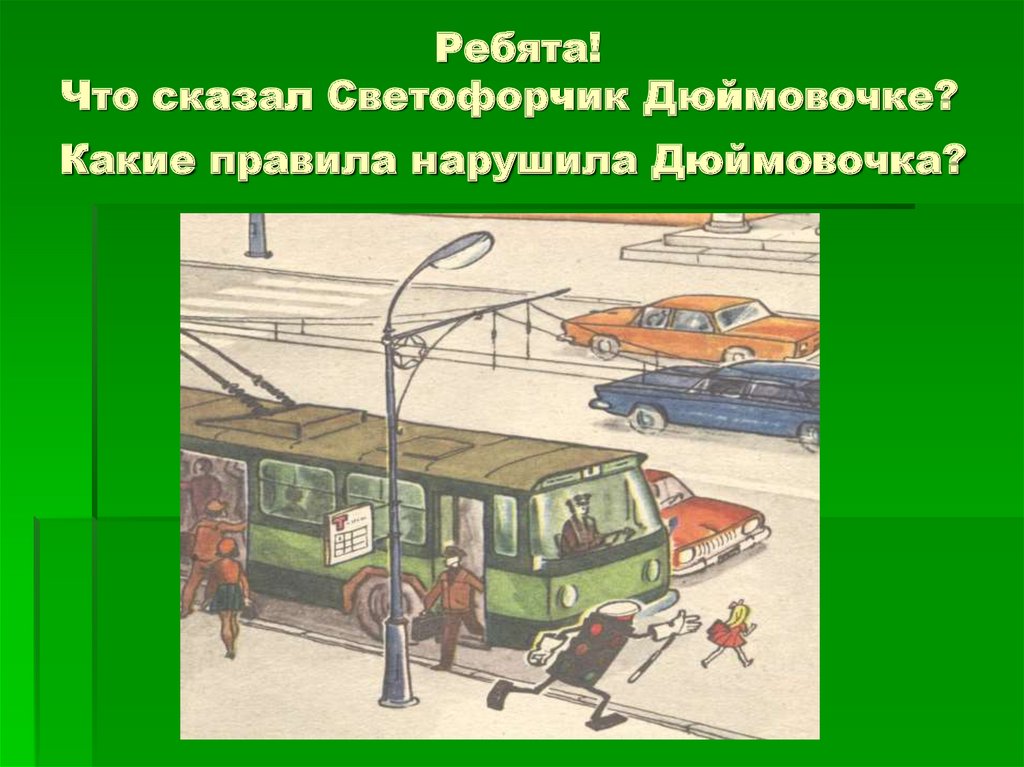 Что сказал Светофорчик Дюймовочке? Какие правила нарушила Дюймовочка?