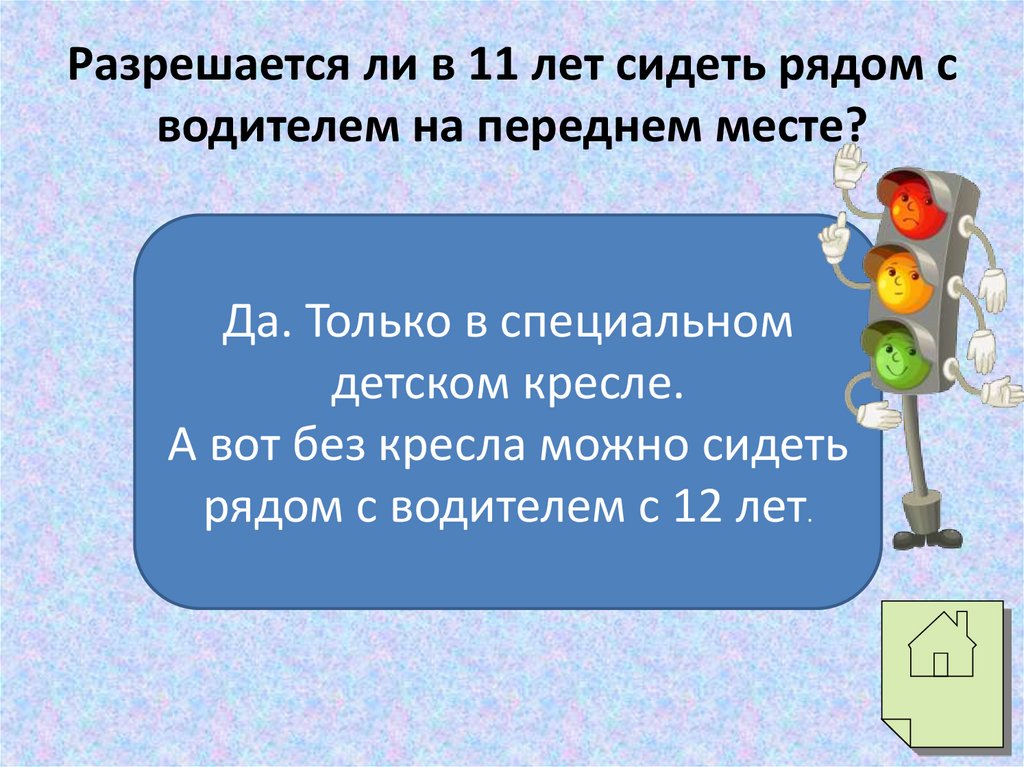 Разрешается ли в 11 лет сидеть рядом сводителем на переднем месте?