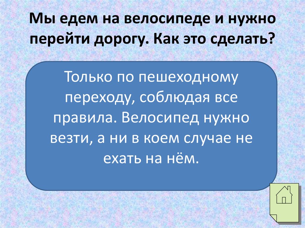 Мы едем на велосипеде и нужноперейти дорогу. Как это сделать?