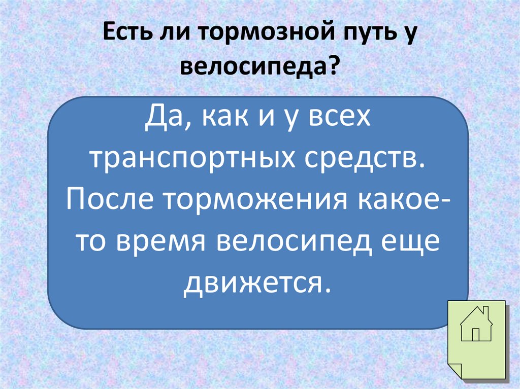 Есть ли тормозной путь увелосипеда?