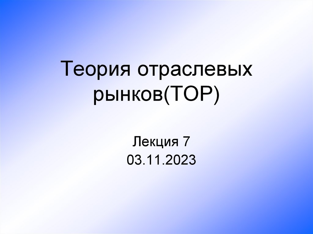 1. Теория отраслевых рынков(ТОР)