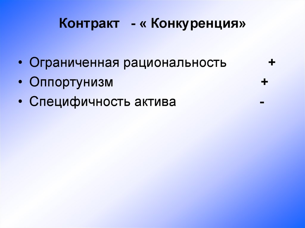 Контракт - « Конкуренция»• Ограниченная рациональность