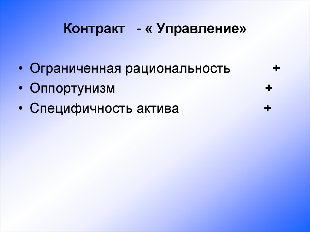 Контракт - « Управление»• Ограниченная рациональность