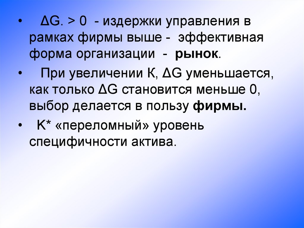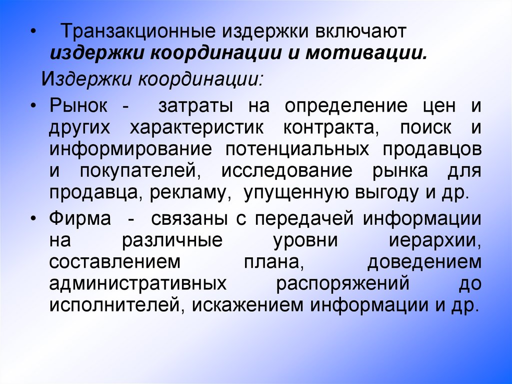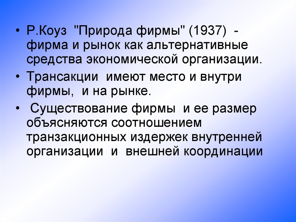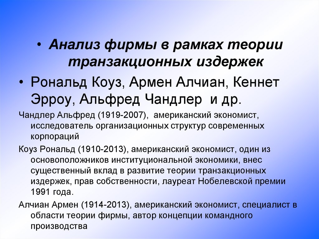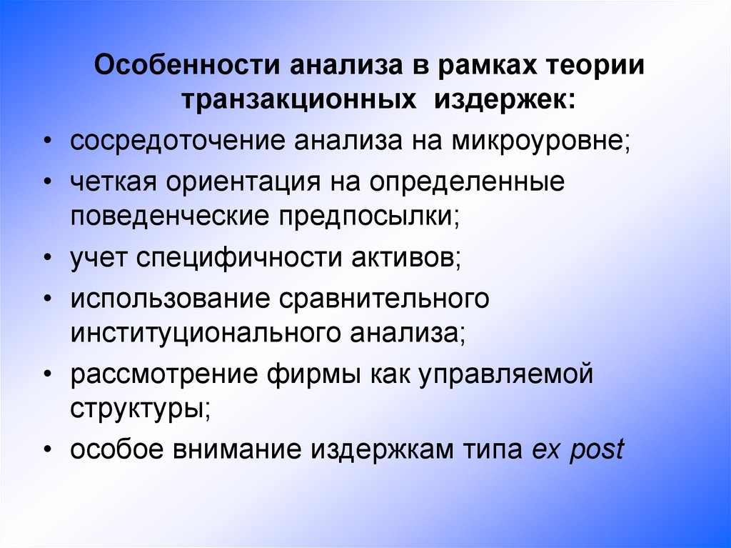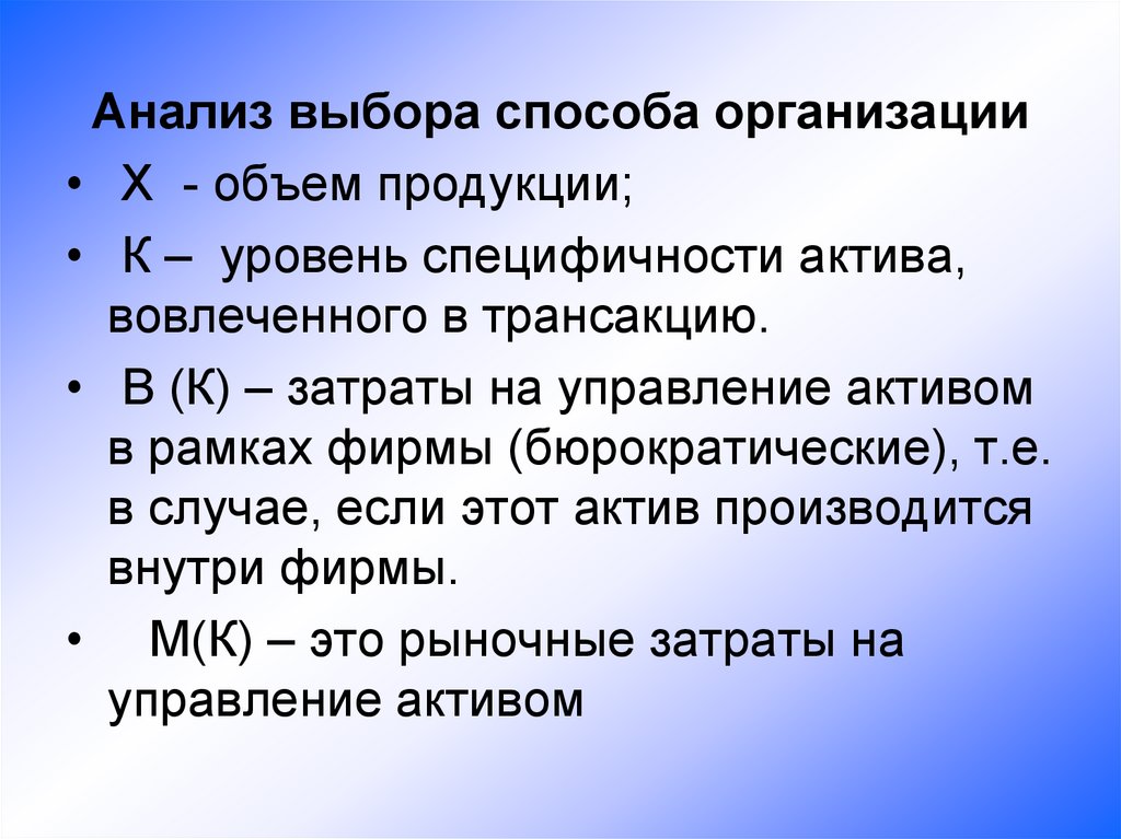 • Анализ фирмы в рамках теориитранзакционных издержек