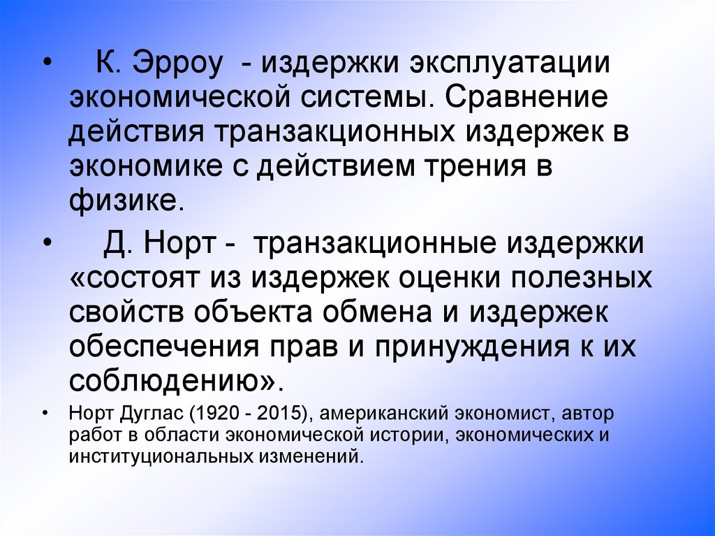 основоположников институциональной экономики, внес
