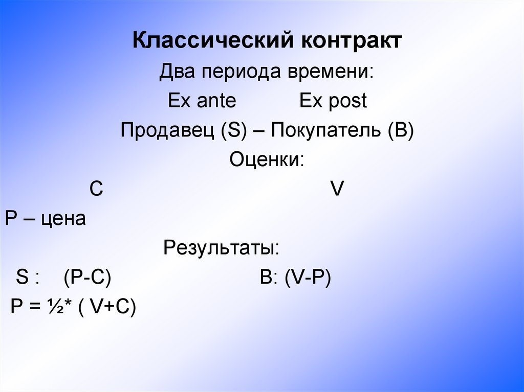 Классический контрактДва периода времени: