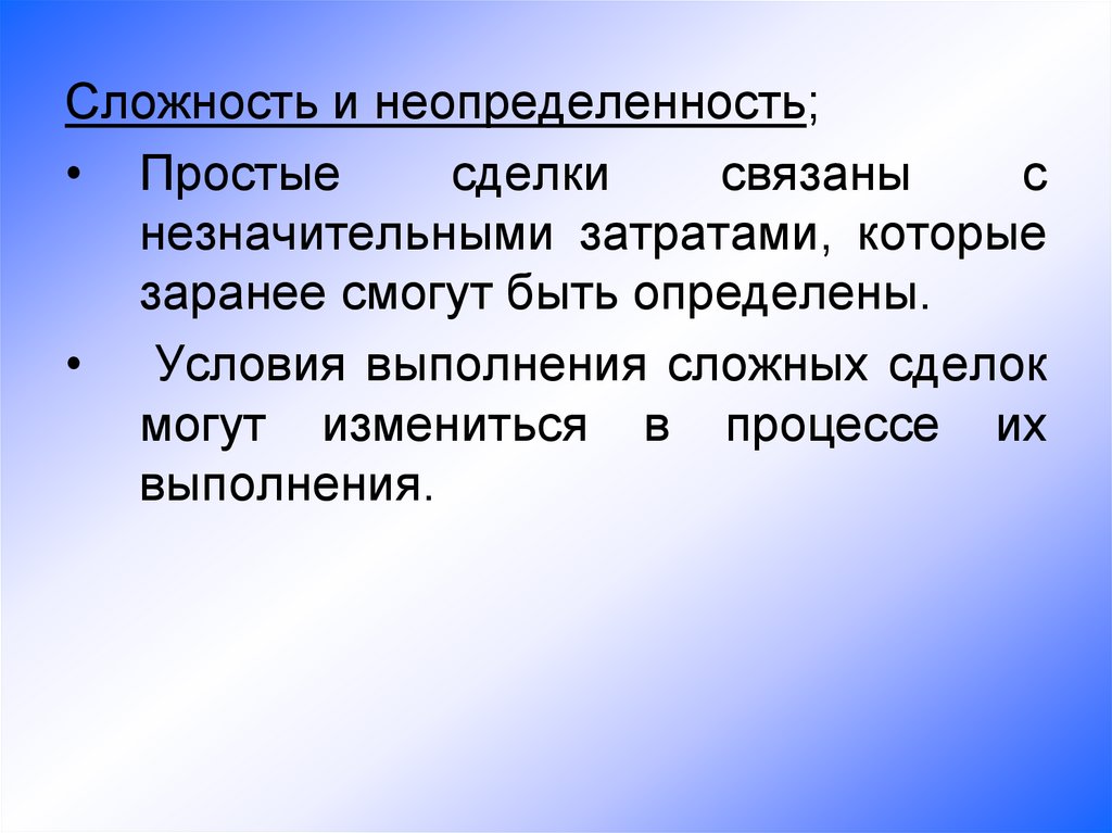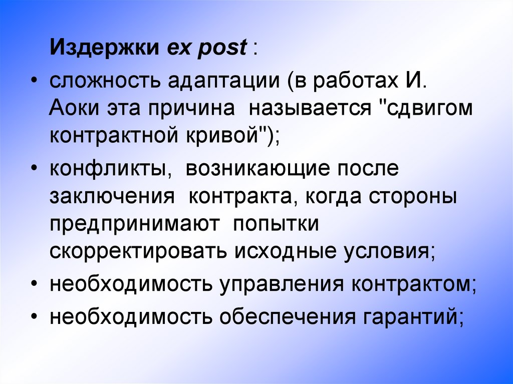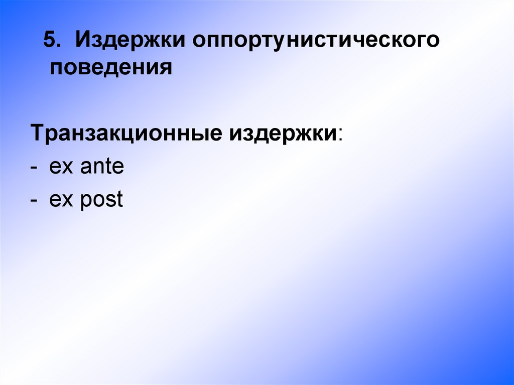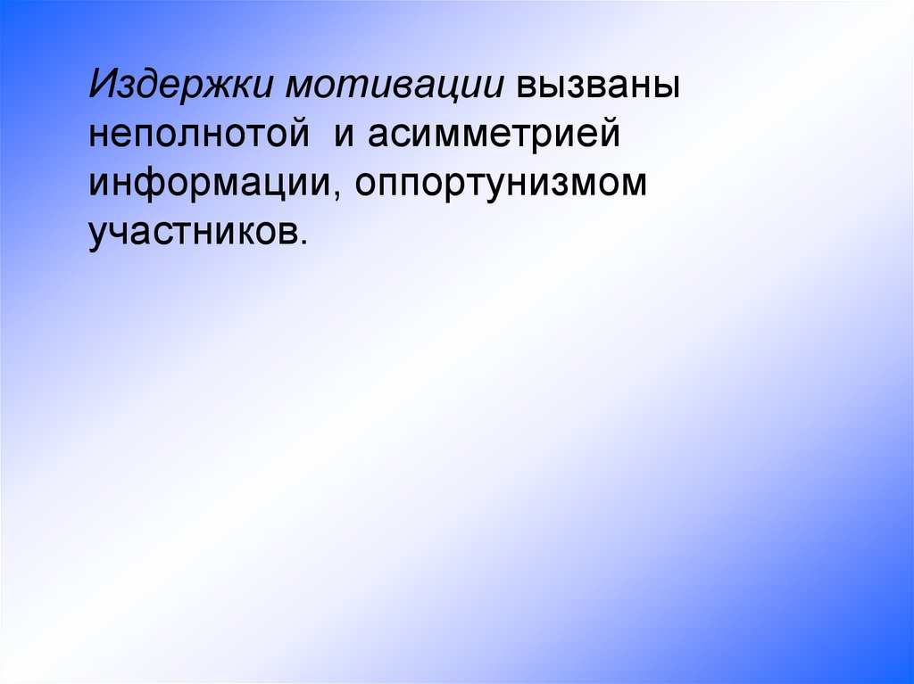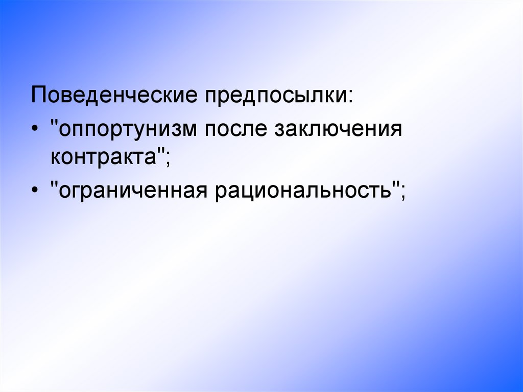 Поведенческие предпосылки:• "оппортунизм после заключения