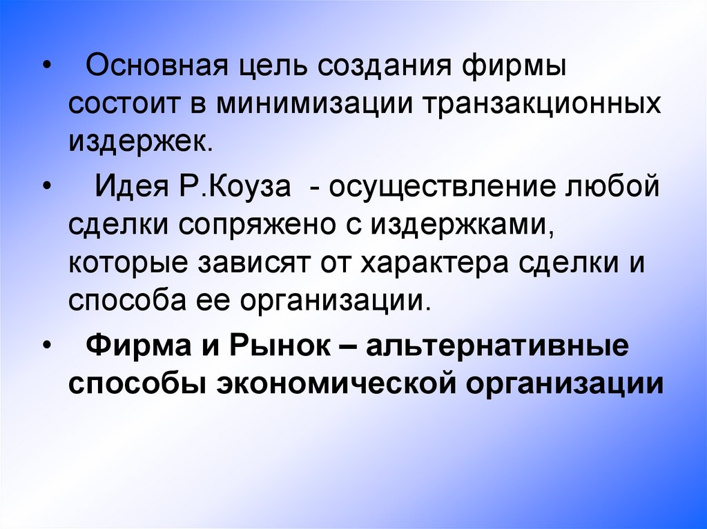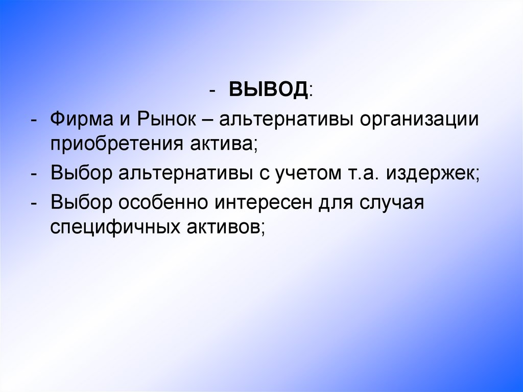 - ВЫВОД:- Фирма и Рынок – альтернативы организации