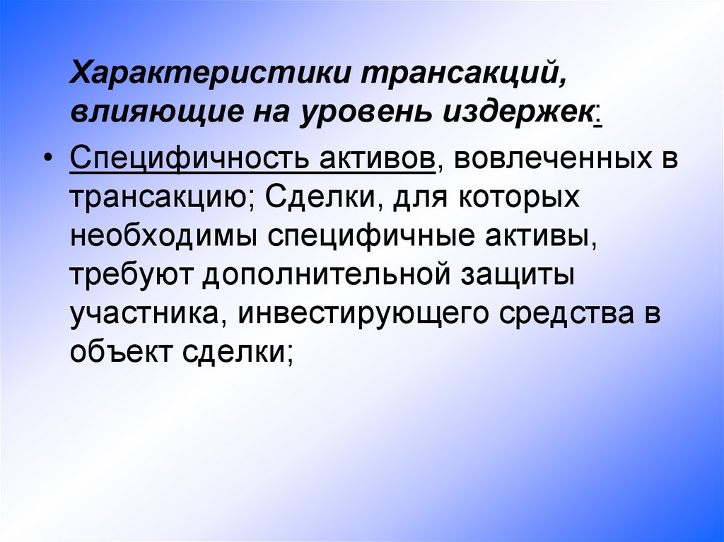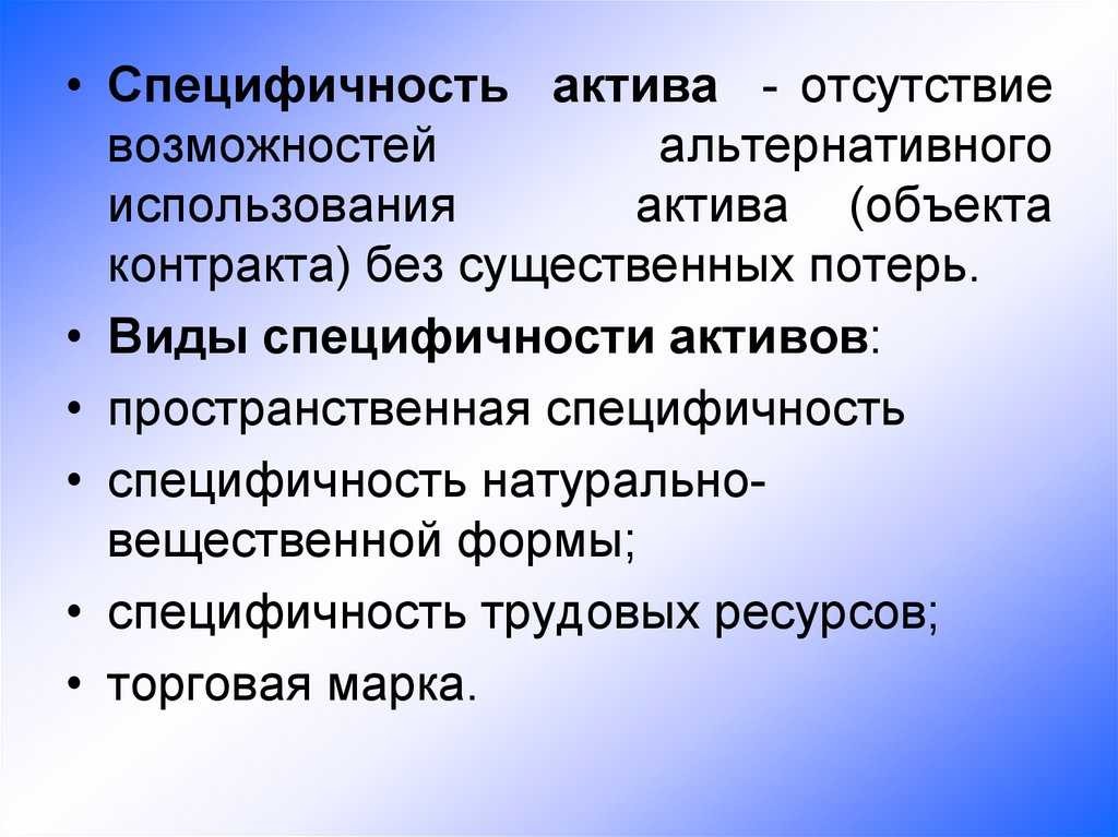 специфичных активов;