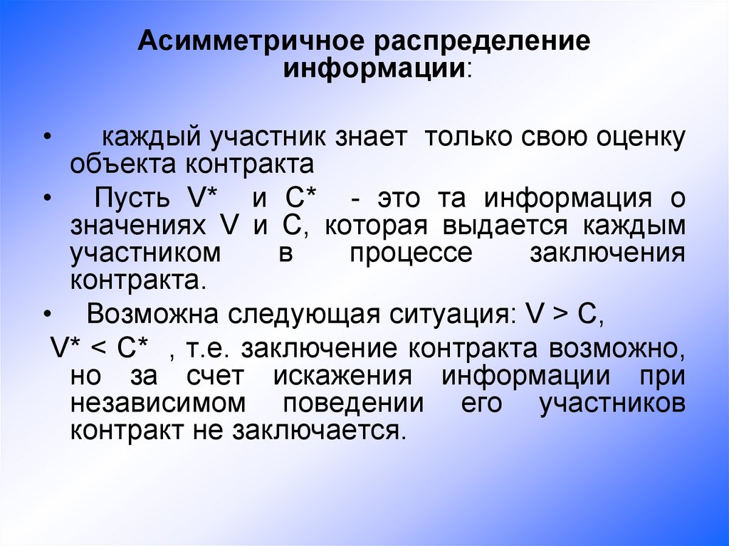 Асимметричное распределениеинформации: