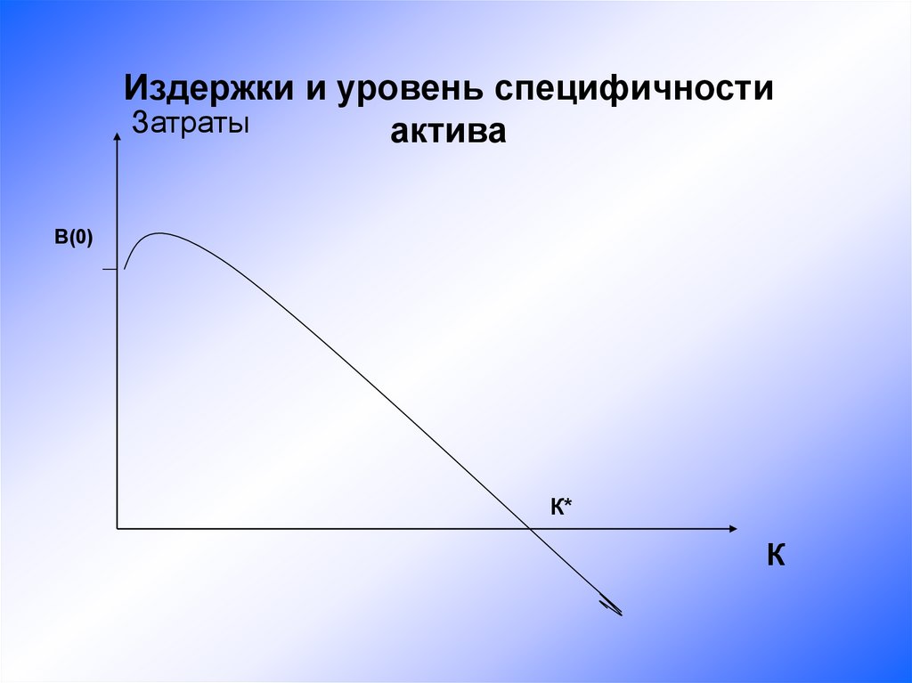 • Специфичность актива - отсутствиевозможностей