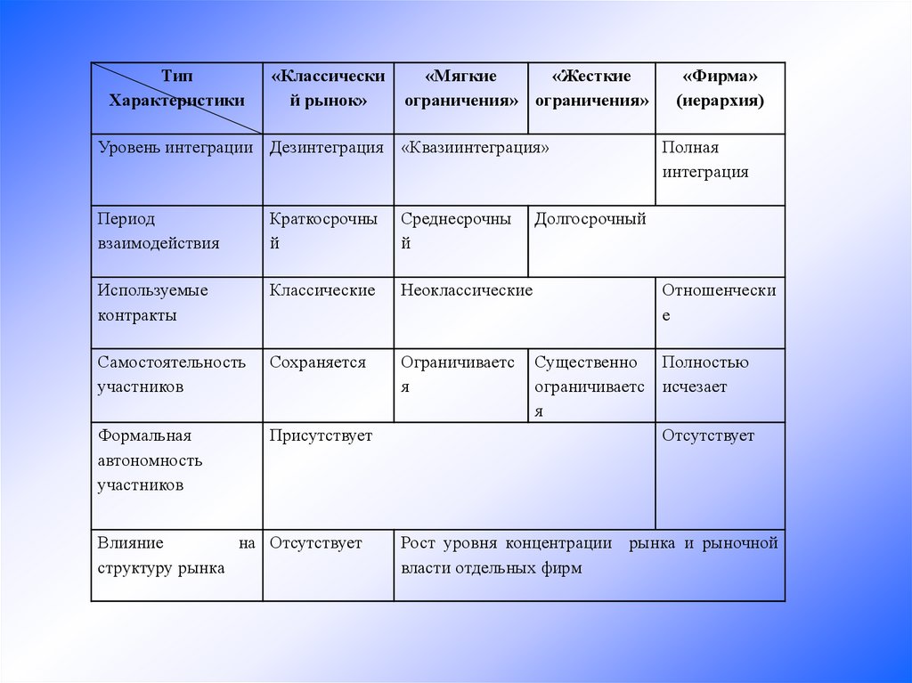 • «Фирма», «Рынок» + «Гибридныеформы»
