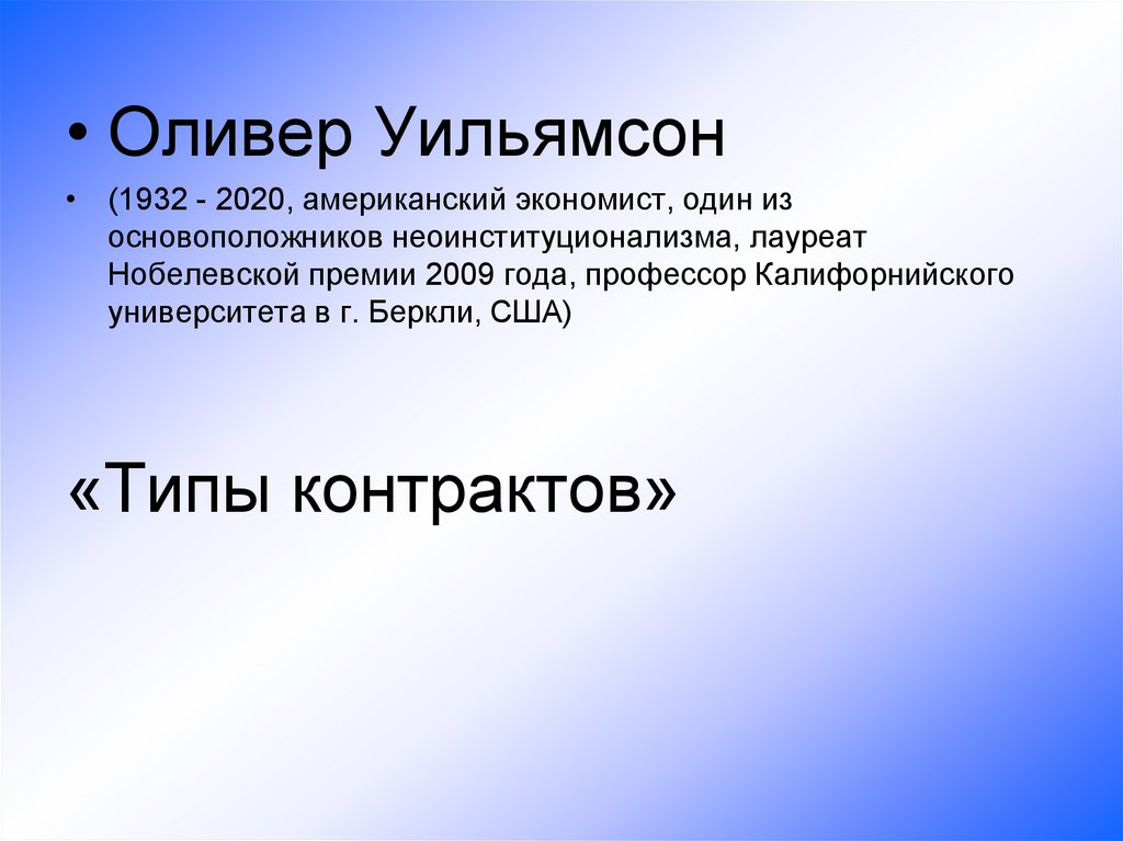 • Оливер Уильямсон• (1932 - 2020, американский экономист, один из