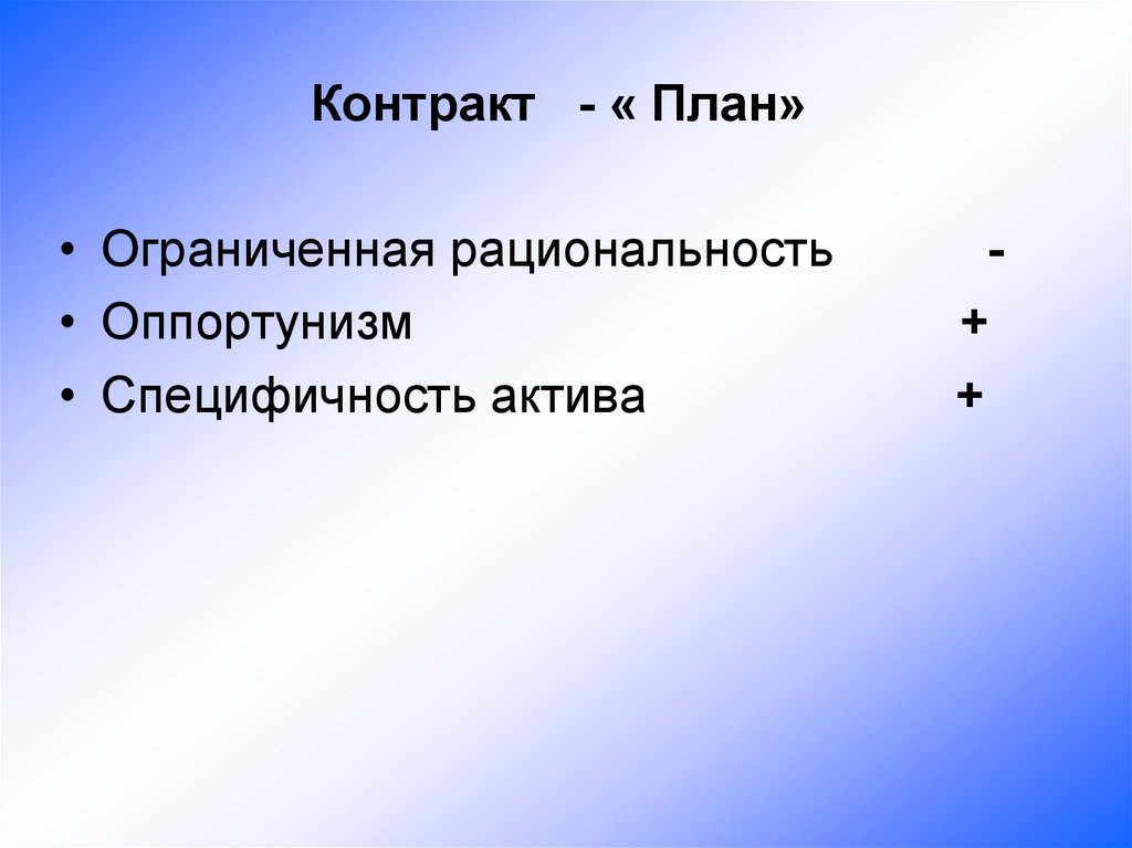 Контракт - « План»• Ограниченная рациональность