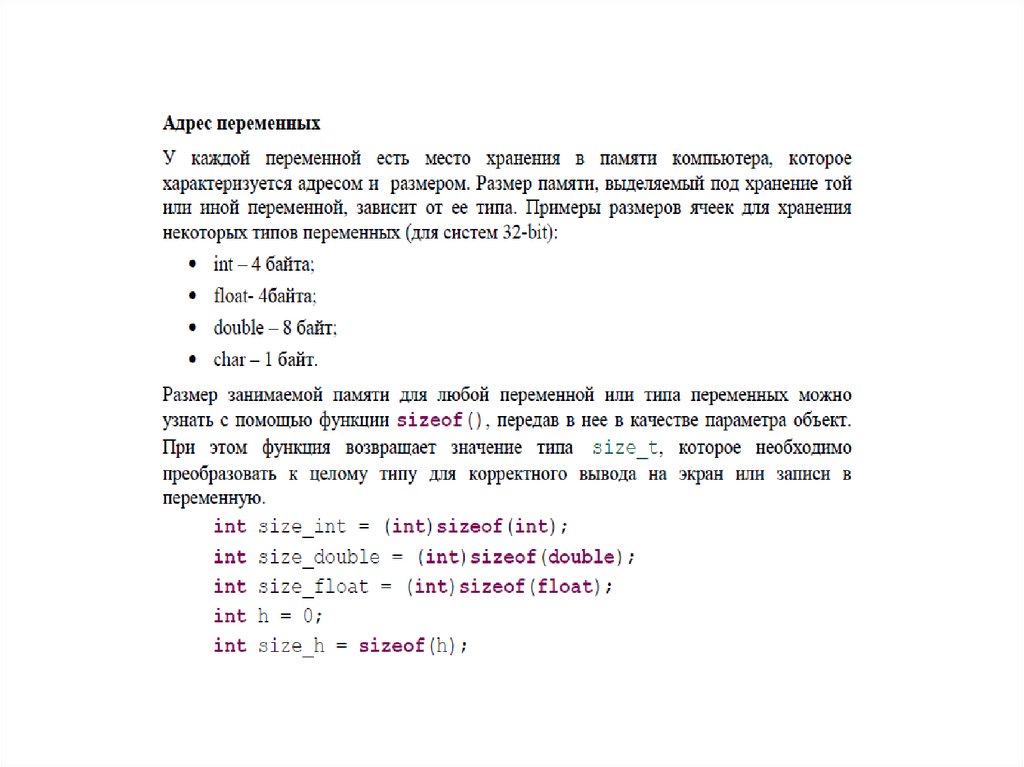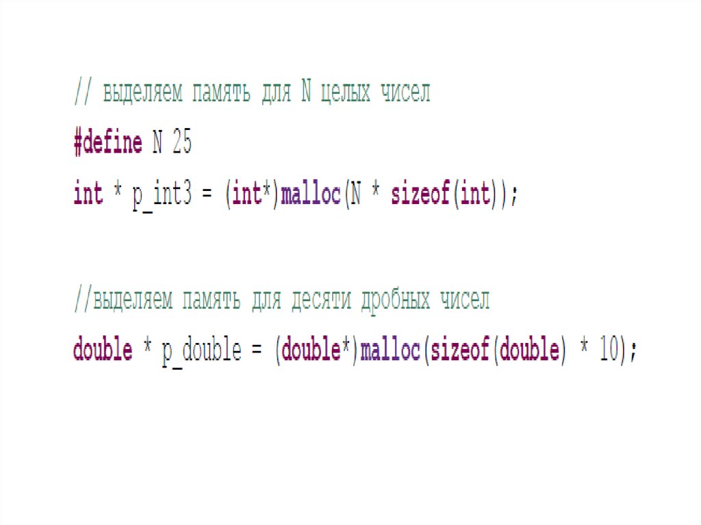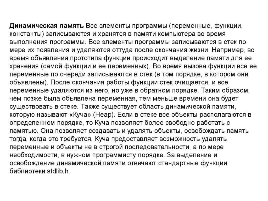 Динамическая память Все элементы программы (переменные, функции,константы) записываются и хранятся в памяти компьютера во время