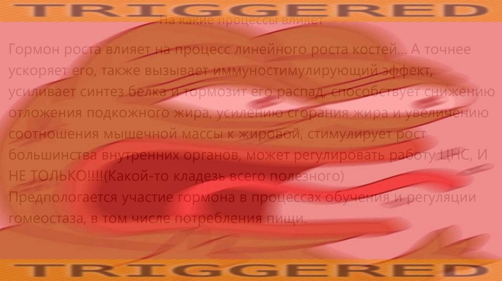 На какие процессы влияетГормон роста влияет на процесс линейного роста костей... А точнее