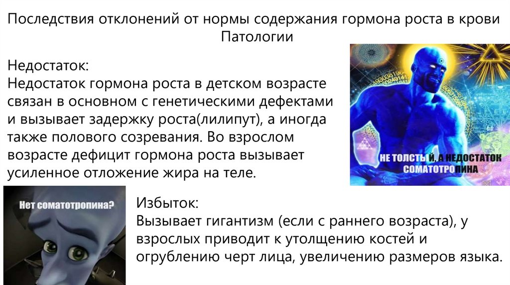 Последствия отклонений от нормы содержания гормона роста в кровиПатологии
