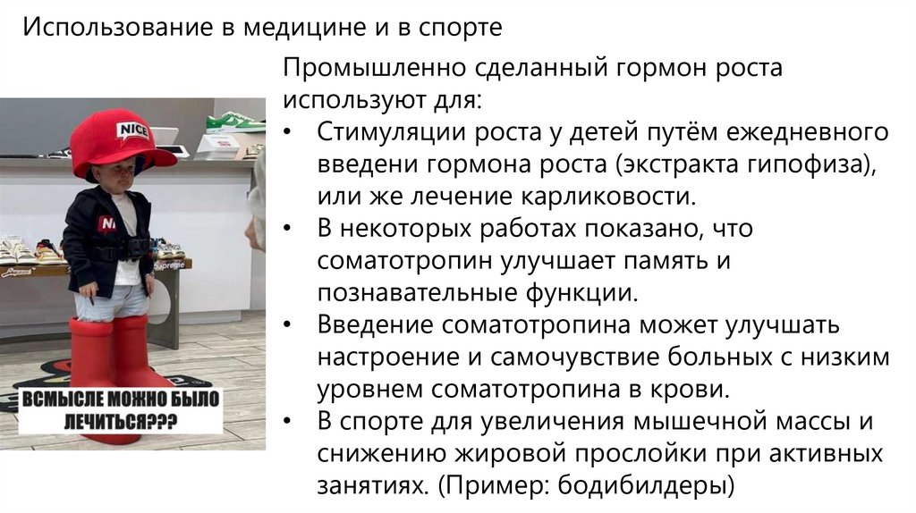 Использование в медицине и в спортеПромышленно сделанный гормон роста