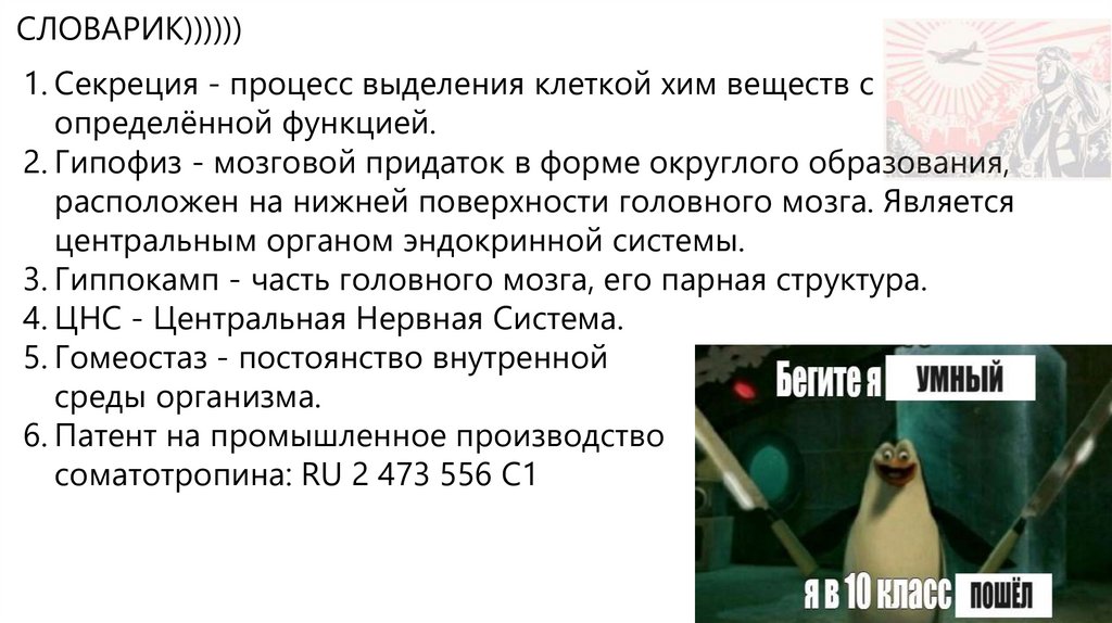 СЛОВАРИК))))))1. Секреция - процесс выделения клеткой хим веществ с